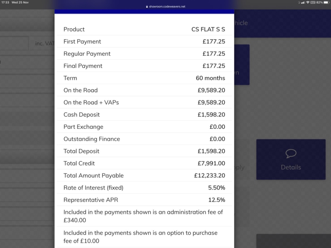 MONTHLY PAYMENT Β£177.25 x 60 AT 12.5% APR Full breakdown of this quote in the pictures.