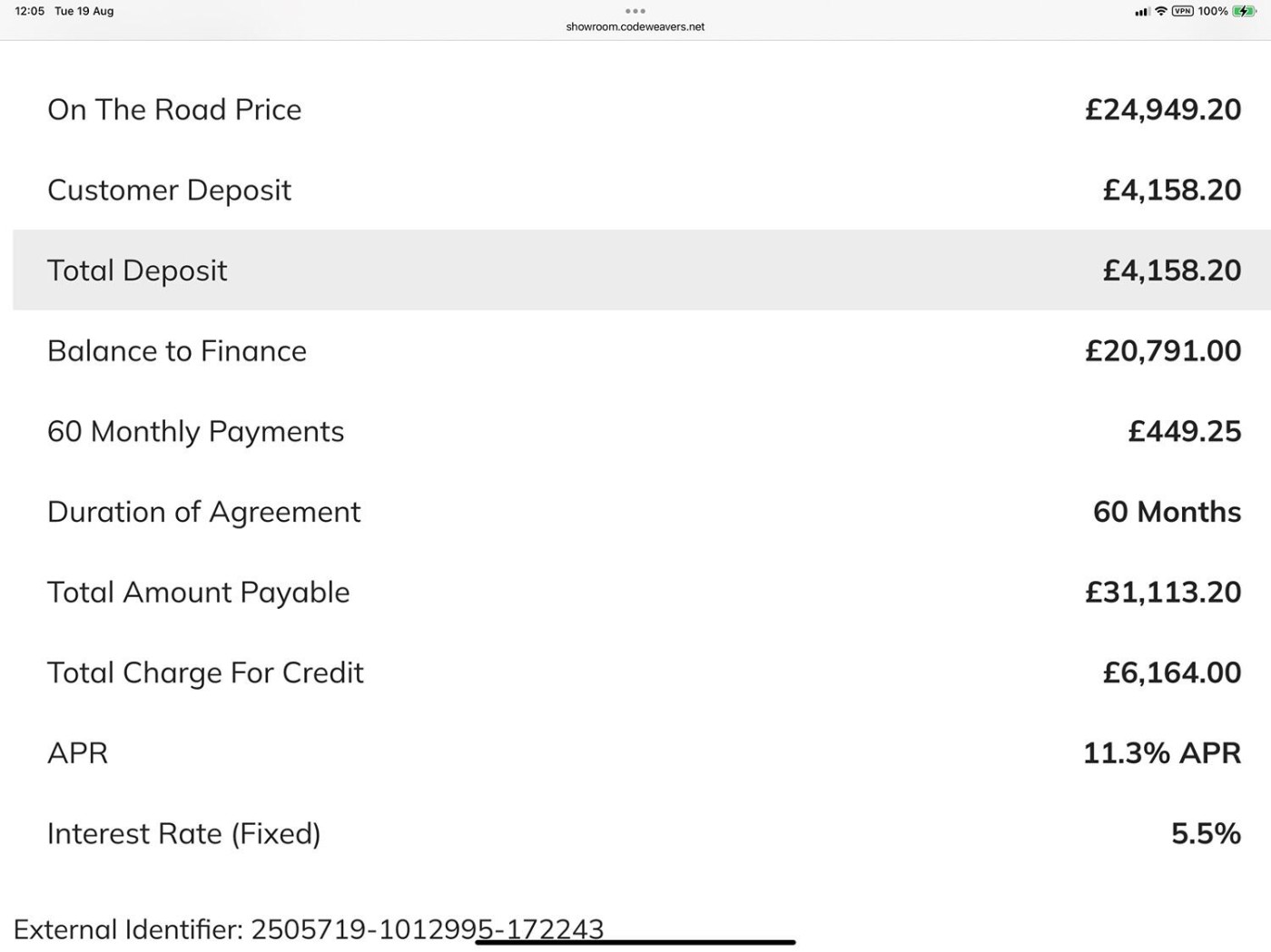 MONTHLY PAYMENT £449.25 x 60 AT 11.3% APR Full breakdown of this quote in the pictures.