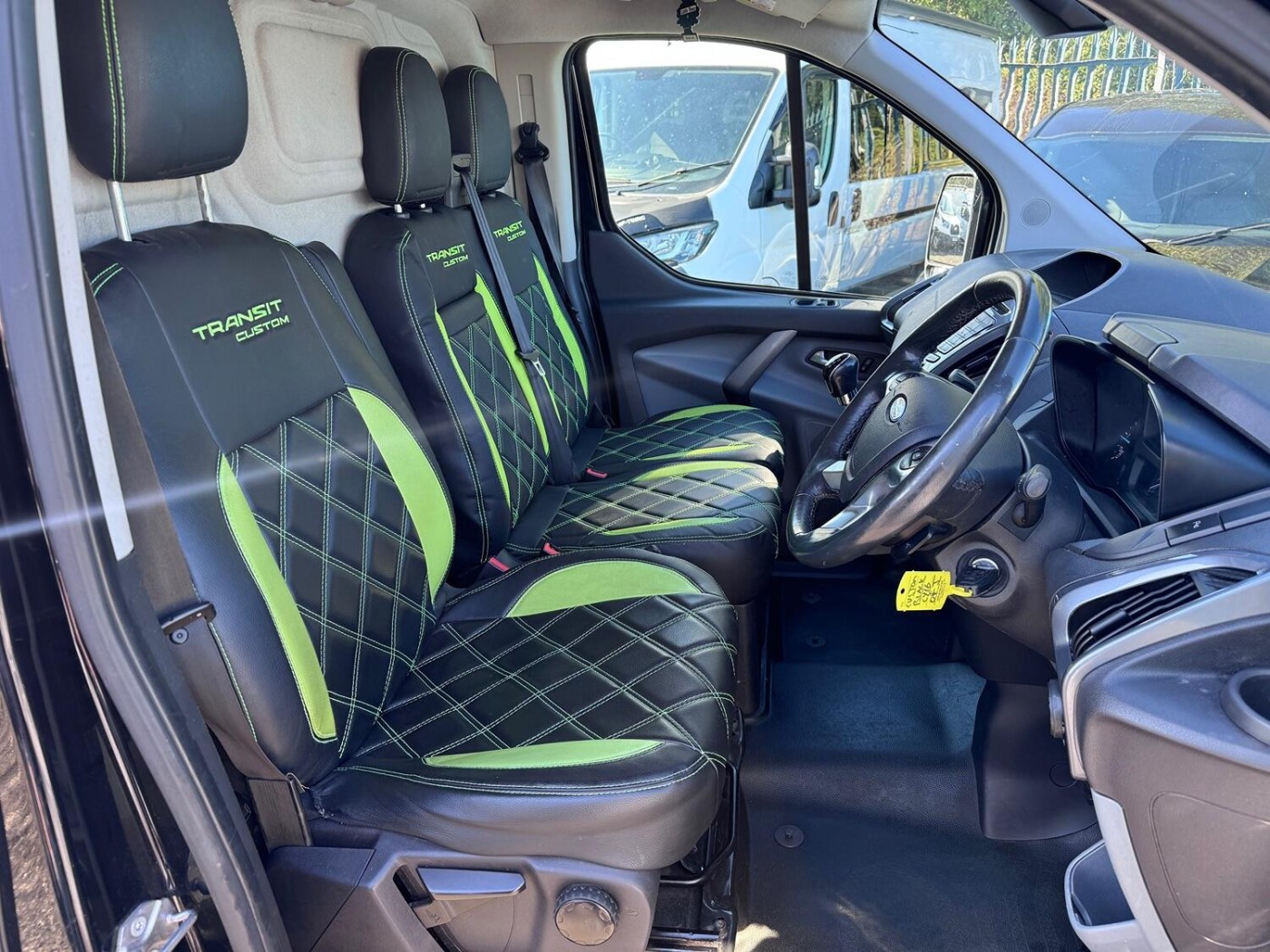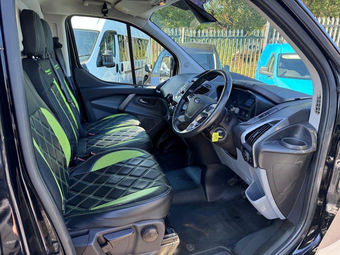 A well equipped Ford Transit Custom - in top of the range Limited trim. This van looks amazing in gleaming Black with it's upgraded grill, 18" gloss black alloys and smart custom interior trim. The van has covered 103870 miles. This is one of the 2.2 engines that does NOT have a dreaded wet belt! The van has had some upgrades to the sound system, There's a active subwoofer under the passenger seat and some upgraded speakers in the doors. There's also a leisure battery under the seat that sends power to some 12v and USB sockets.