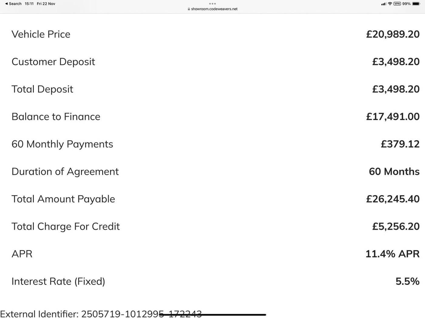 MONTHLY PAYMENT £379.12 x 60 AT 11.4% APR Full breakdown of this quote in pictures.