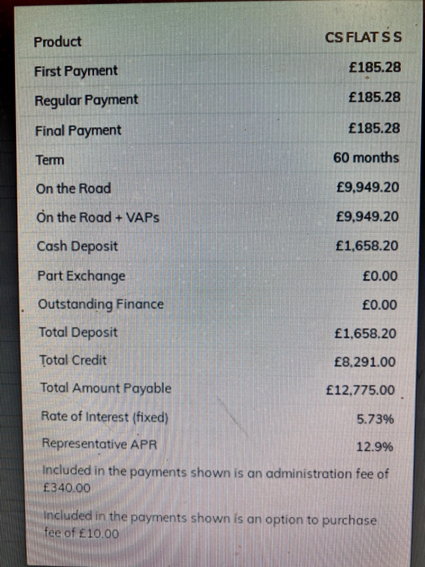 👍👍MONTHLY PAYMENT £185.28 x 60 AT 12.9% APR Full breakdown of this quote in pictures.👍👍