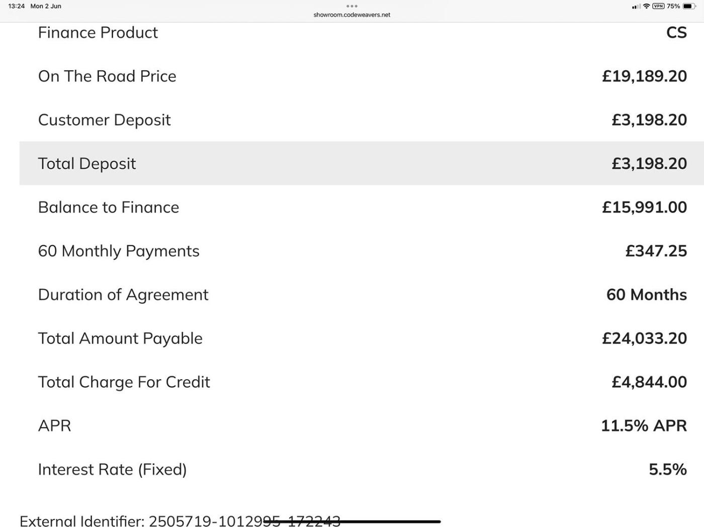 MONTHLY PAYMENT £347.25 x 60 AT 11.5% APR Full breakdown of this quote in pictures.