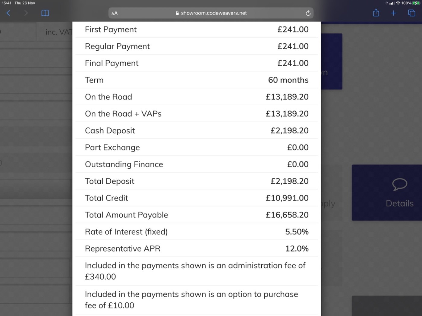 MONTHLY PAYMENT £241 x 60 AT 12% APR Full breakdown of this quote in pictures.