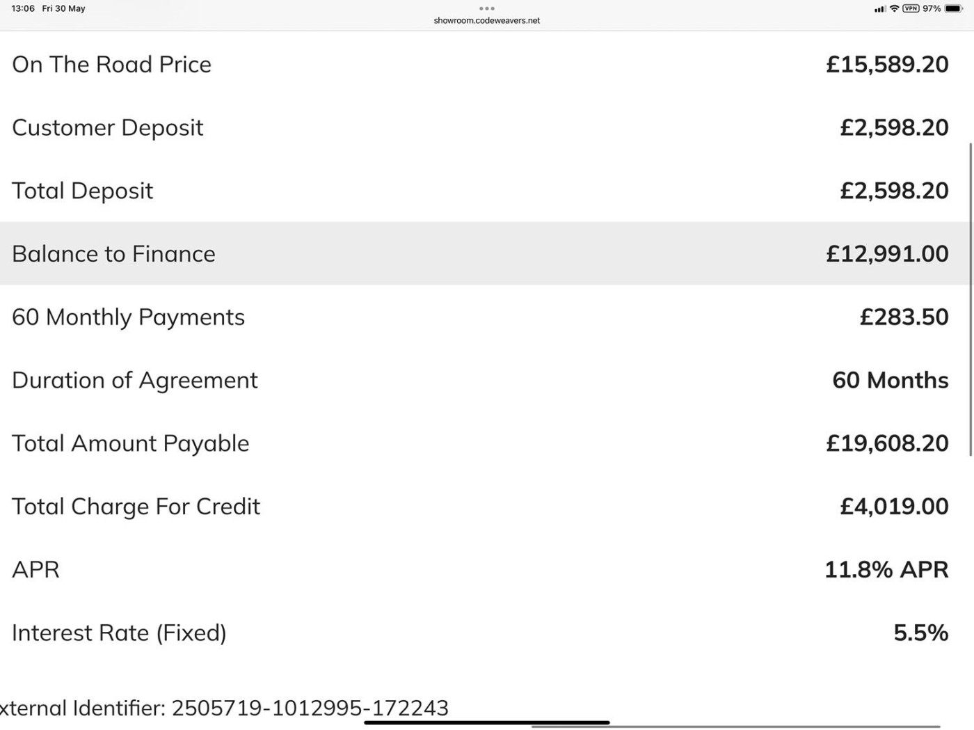 MONTHLY PAYMENT £283.50 x 60 AT 11.8% APR Full breakdown of this quote in pictures.