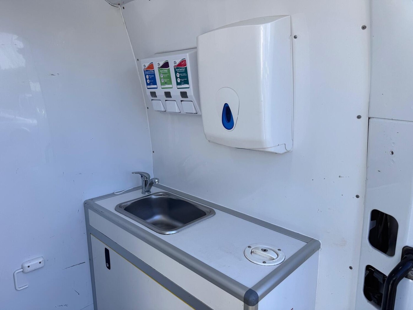 ✅ sink + soap and tissue dispenser.