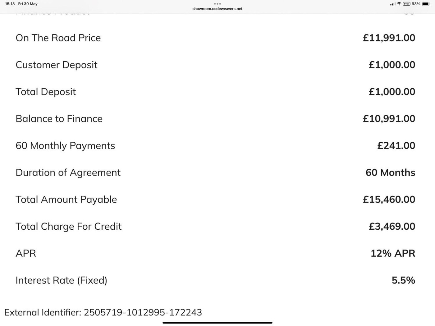 MONTHLY PAYMENT £241 x 60 AT 12 % APR Full breakdown of this quote in pictures.