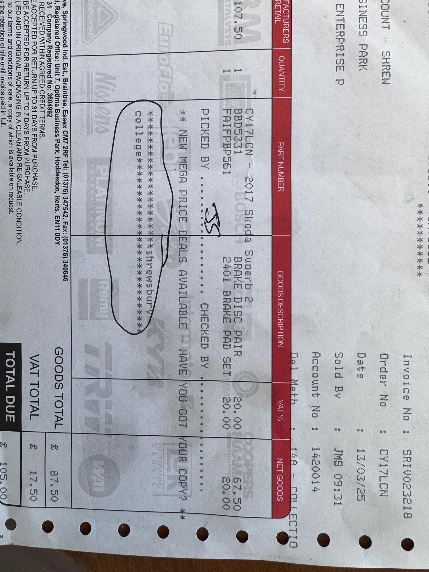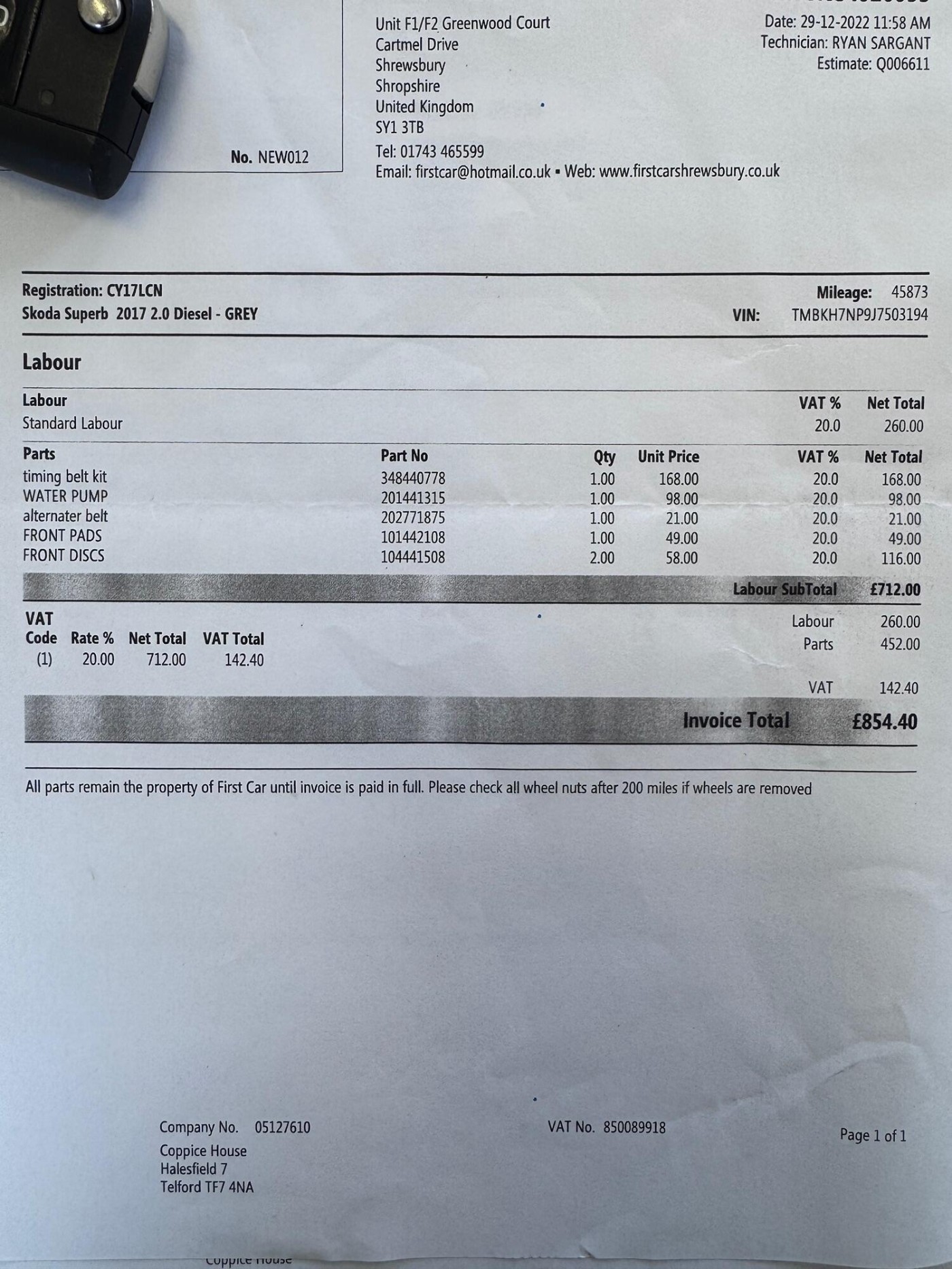29/12/2022 @45873 Miles - Timing belt, Waterpump + brakes.