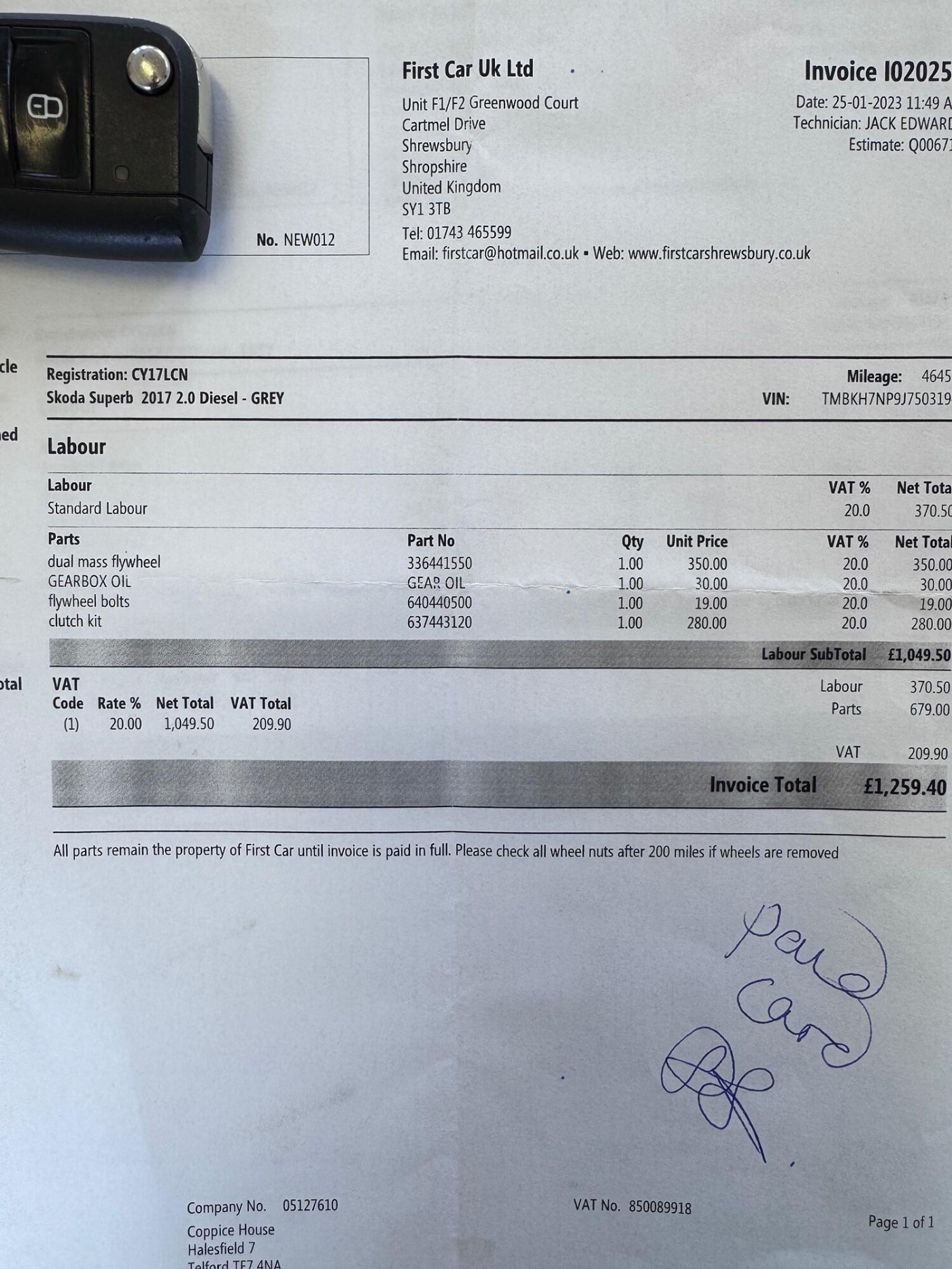 25/01/2023 @46451 Miles - Dual Mass Flywheel and clutch. Gearbox oil.