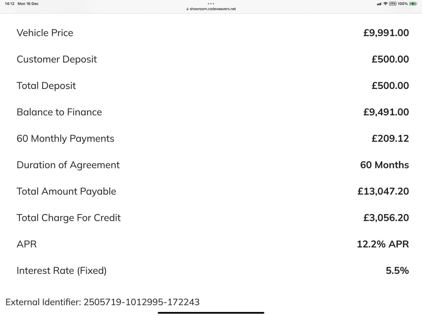 MONTHLY PAYMENT £209.12 x 60 AT 12.2% APR Full breakdown of this quote in pictures.