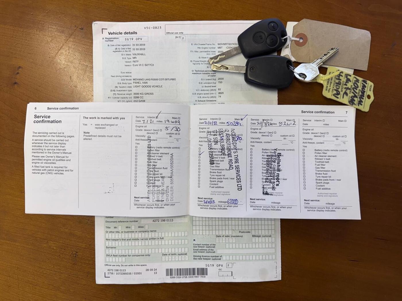 The van benefits from Full service history. There are three stamps in the book. The service intervals are every 25000 on this van. The last service was completed on 29/03/24 at 82400 miles.