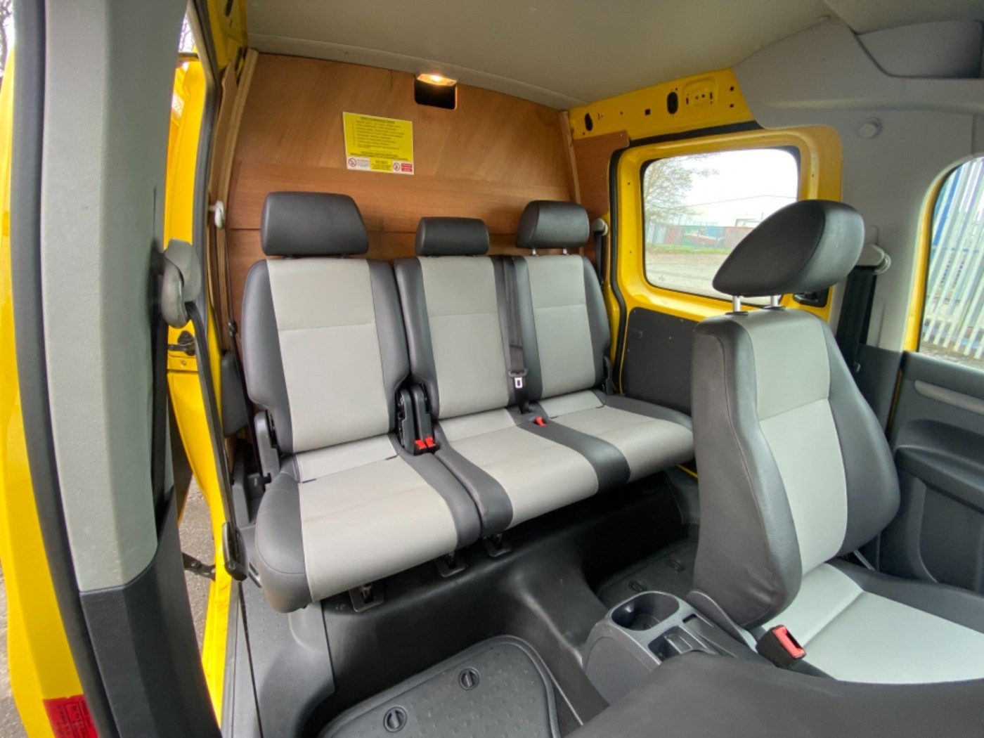 A really smart looking 5 seat Caddy Maxi van. The van has colour coded bumpers, subtle boot spoiler and 18" VW Alloys. This is a one owner van ( Direct from the council). The van benefits from a service printout, there are 5 services documented, the last being completed at 53321 miles.