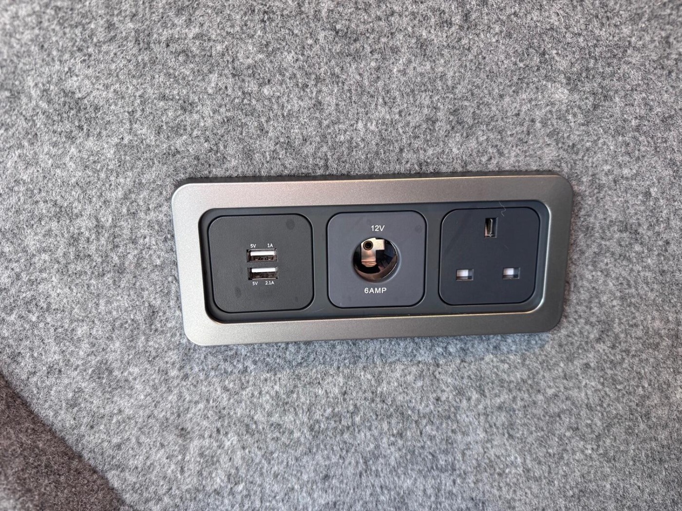 ✅ USB, 12v and Mains sockets.