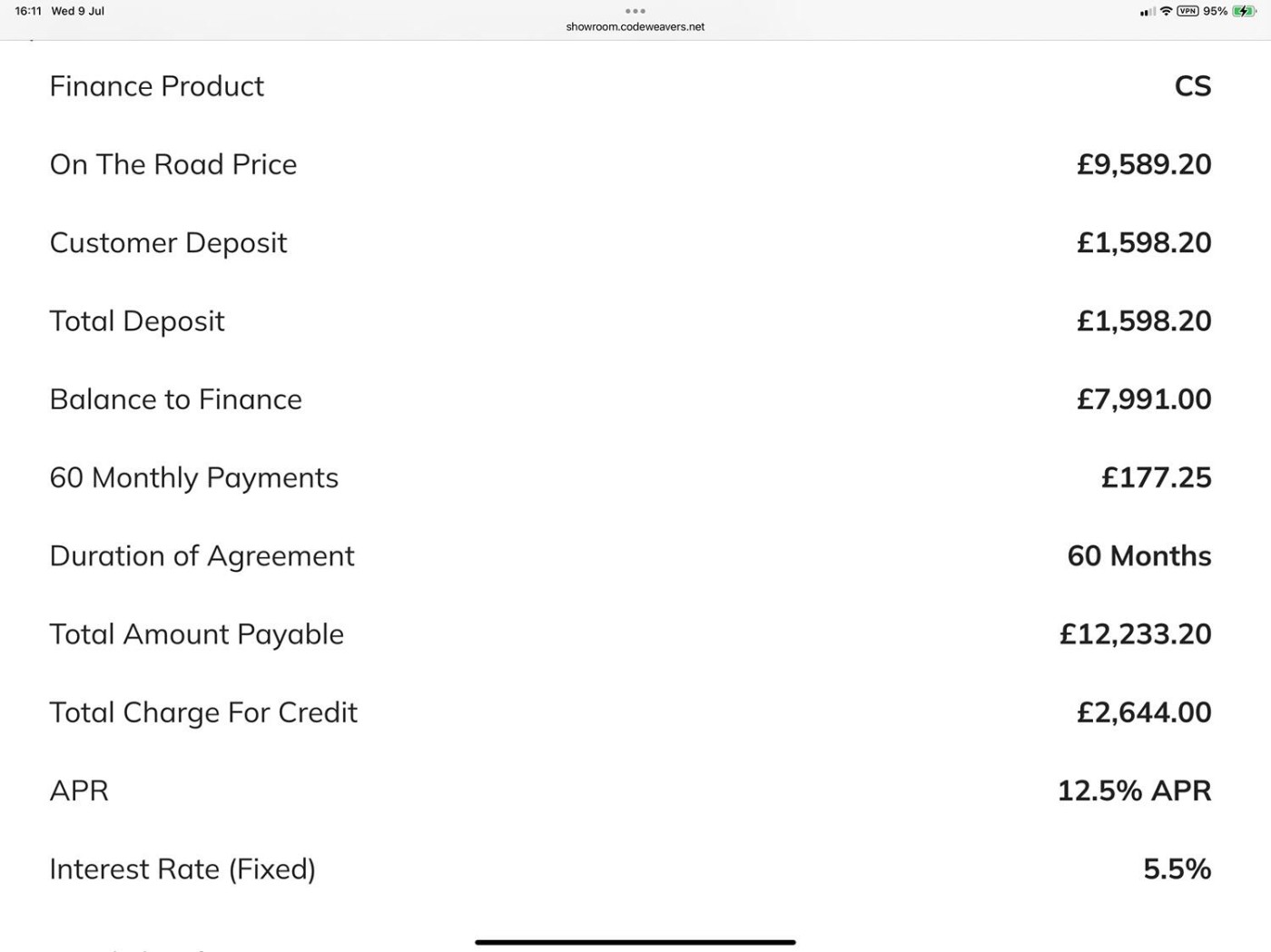MONTHLY PAYMENT £177.25 x 60 AT 12.5 % APR Full breakdown of this quote in pictures.